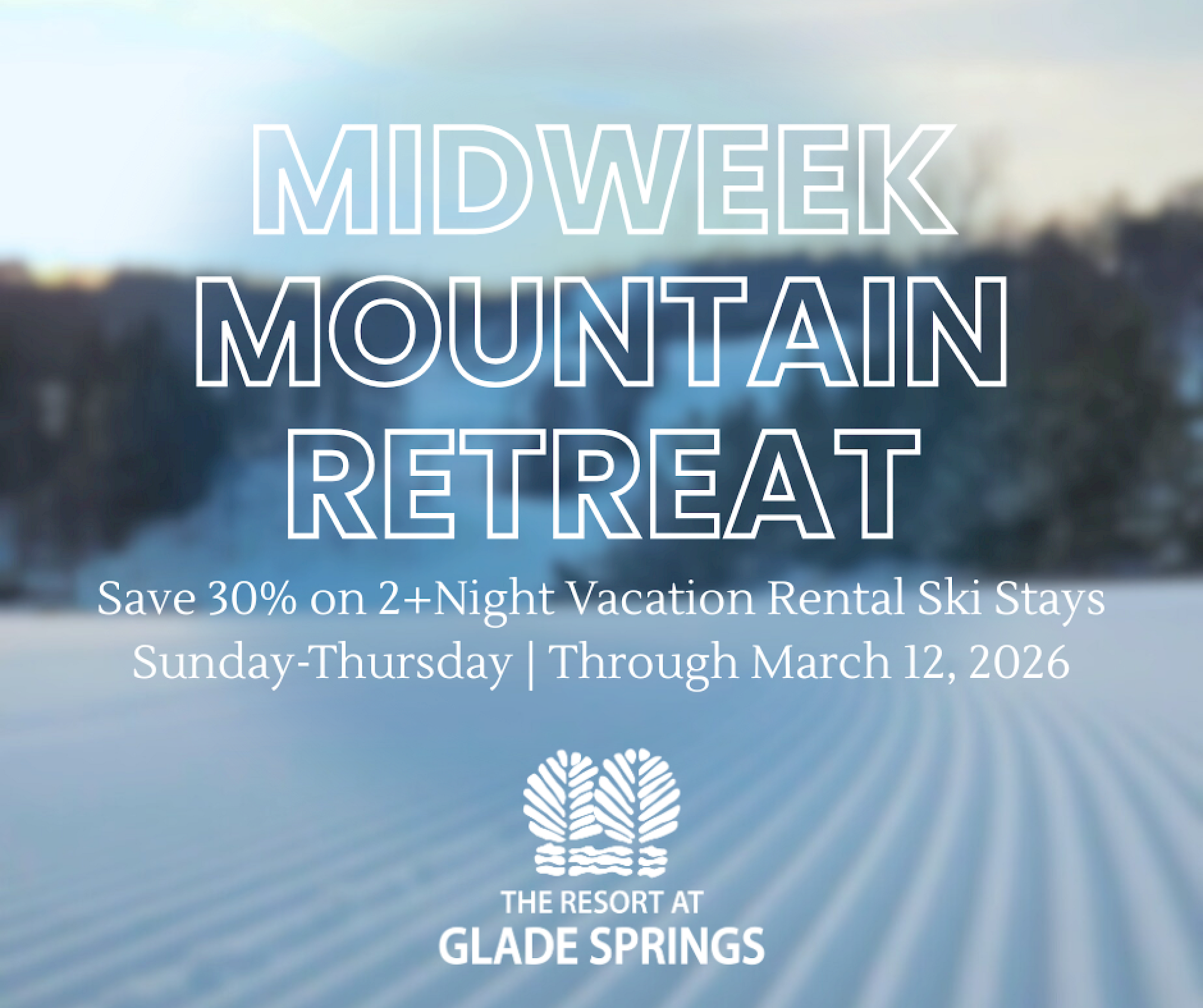 Extend your getaway in the mountains. When you stay two consecutive midweek nights in our vacation rentals, you’ll receive 30% off. Whether you're relaxing at the spa, enjoying onsite activities and dining, or skiing at Winterplace Ski Resort, this offer gives you more time to unwind and enjoy everything our resort has to offer. Available midweek, non-holiday in our vacation rentals: 4 Bedroom or 6 Bedroom Chestnut Hill Lodges, 3 Bedroom Oak Lane Villas, 1 Bedroom or 2 Bedroom Manor House Suites; based on availability. Breakfast is not included. Rate is pre-paid and non-refundable.